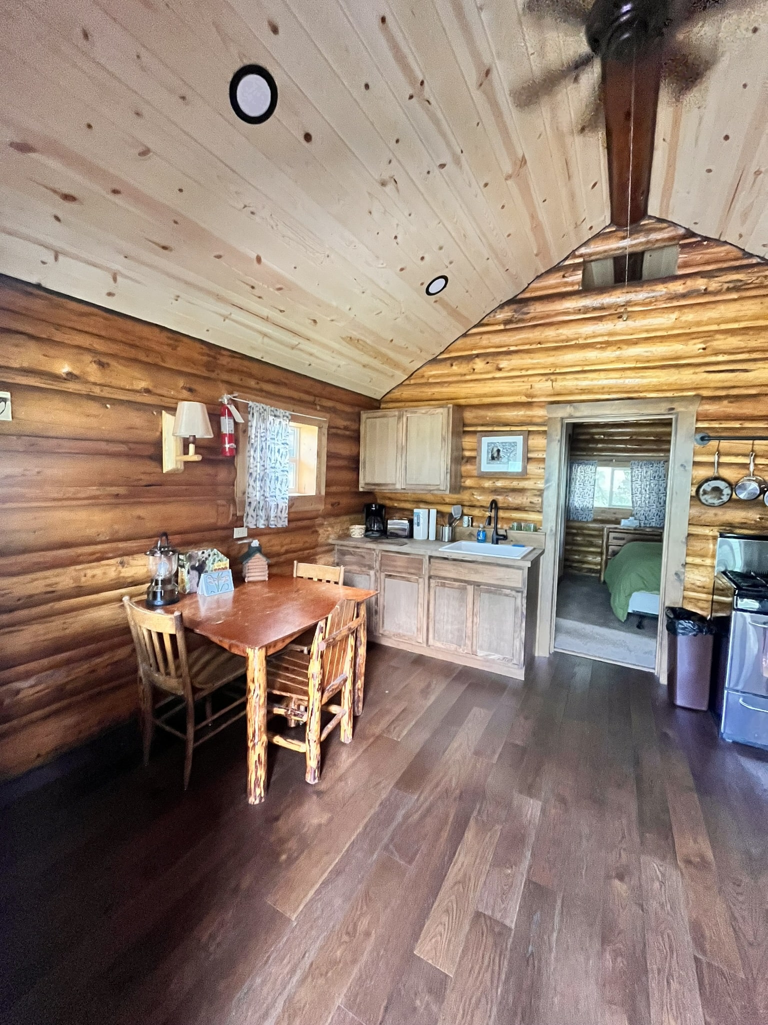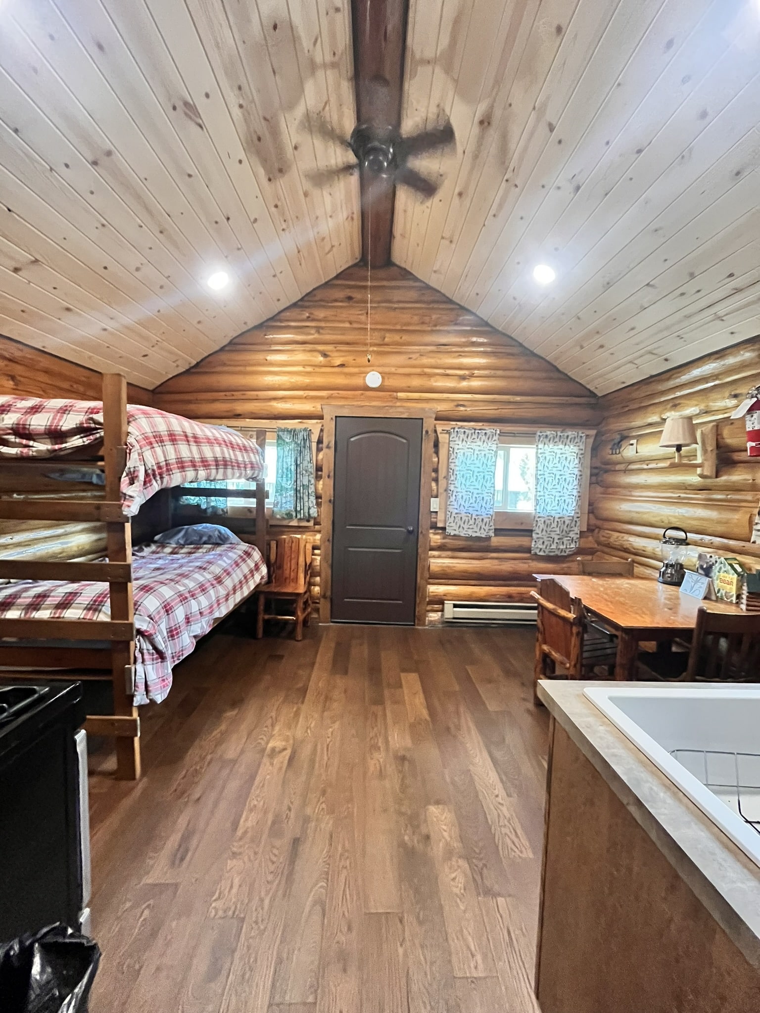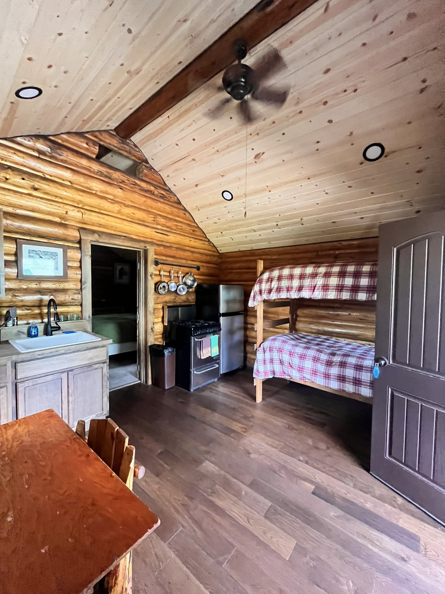 *Newly Remodeled* Rustic Cabin with 1 Double (Full) Bed, a Bunk Bed, a Full Kitchen and a Small Bathroom with shower. 2 Seperate sleeping areas.