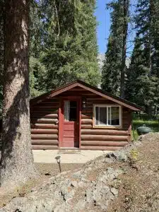 This comfy cabin is situated on the Whispering Pines property which overlooks 11,000ft tall mountain peaks.